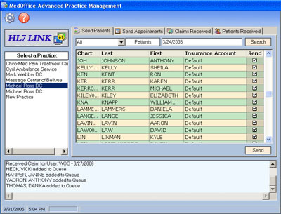 Our company provides a seamless interface that bridges our practice management software with HL7-compliant EMR systems. Users can transfer patient and appointment records from MedOffice to EMR and transfer claims information from EMR to MedOffice. Users have the choice to view and validate the transfer in the HL7 module before committing to MedOffice or the EMR system.