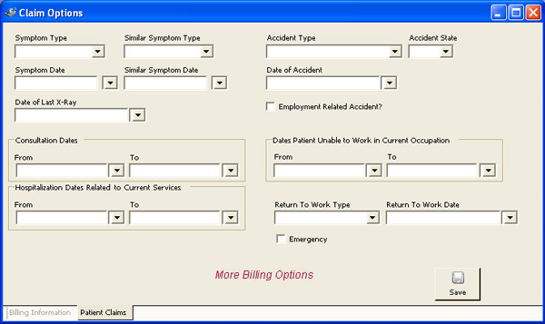 The main window is feature-rich. You can enter new claims, view a patient’s claims history or insurance balance, research prior claims, and see the detail of every transaction on a claim at the bottom of the screen.